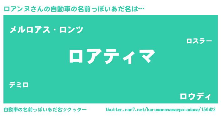 | 2回繰り返すあだ名 | 『ロアロア』『もくもく』『ロロアア』 |