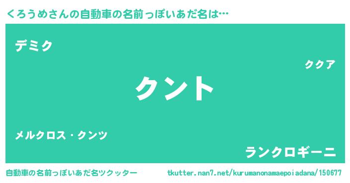 | 意味不明あだ名 | 『とにかく怪しいくろうめ』 |