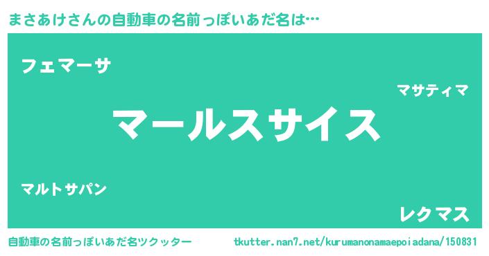 | 男性向けラノベタイトル風あだ名 | 『マサアケスレイヤー』 |