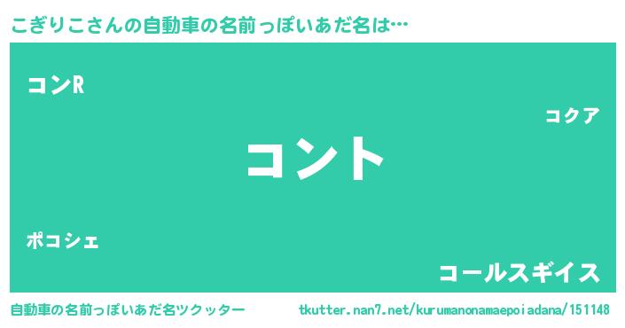 | 男性向けラノベタイトル風あだ名 | 『こぎりこの嫁は女の子じゃないと思った?』 |