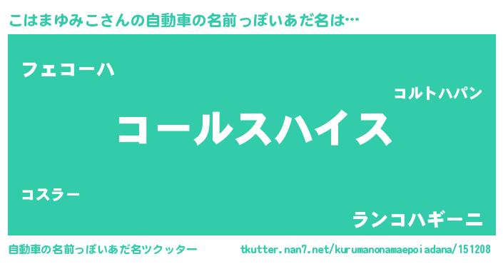 | 男性向けラノベタイトル風あだ名 | 『こはまゆみこ~年齢イコール彼女いない歴の魔法使い~』 |