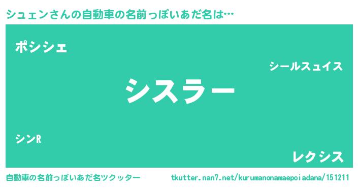 | 意味不明あだ名 | 『シュェンフォーエバー』『自称シュェン』 |