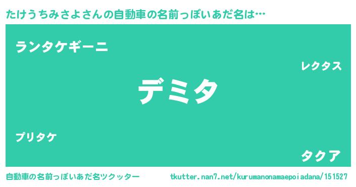 | 胡散臭い通販商品みたいなあだ名 | 『絶対に幸福をもたらす健康食品…その名も「たけうちみさよ」』 |