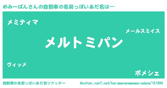 | 男性向けラノベタイトル風あだ名 | 『ダンジョンにめみーぱんを求めるのは間違っているだろうか』 |