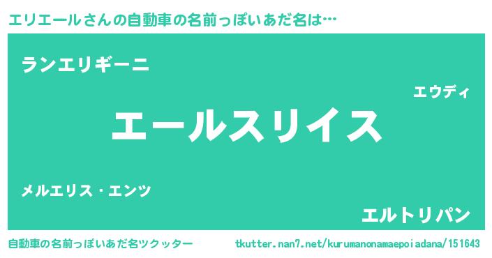| 男性向けラノベタイトル風あだ名 | 『エリエール~年齢イコール彼女いない歴の魔法使い~』 |