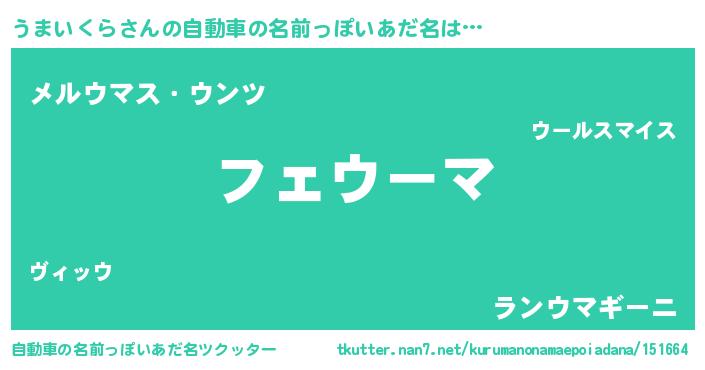 | 男性向けラノベタイトル風あだ名 | 『うちのうまいくらが世界を掌握している!』 |