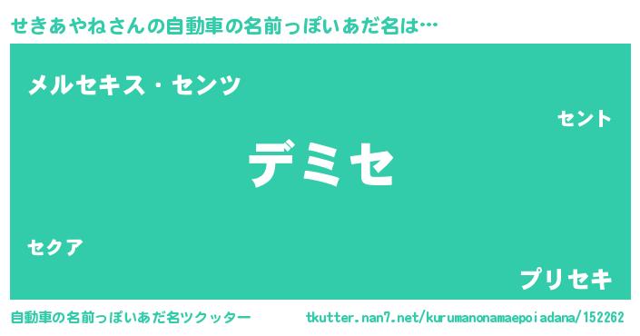 | 男性向けラノベタイトル風あだ名 | 『せきあやねという概念が存在しない退屈な世界 』 |