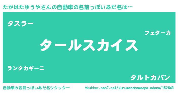 | 男性向けラノベタイトル風あだ名 | 『タカハタユウヤスレイヤー』 |