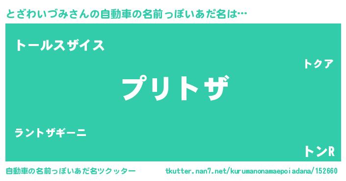 | ヒーロー風カッコイイあだ名 | 『スーパートザワイヅミ』『幻影騎士トザ』 |