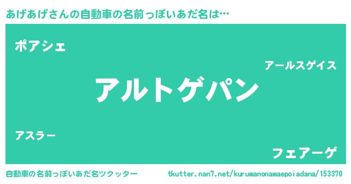 | 女子向けラノベタイトル風あだ名 | 『あげあげは平凡を望む』 |