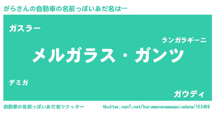 | 男性向けラノベタイトル風あだ名 | 『Re:がらから始める異世界生活』 |