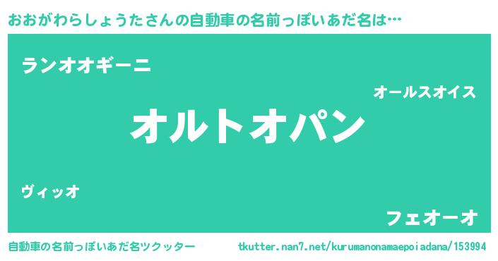 | 欧米人風あだ名 | 『ウサインおおがわらしょうた』 |