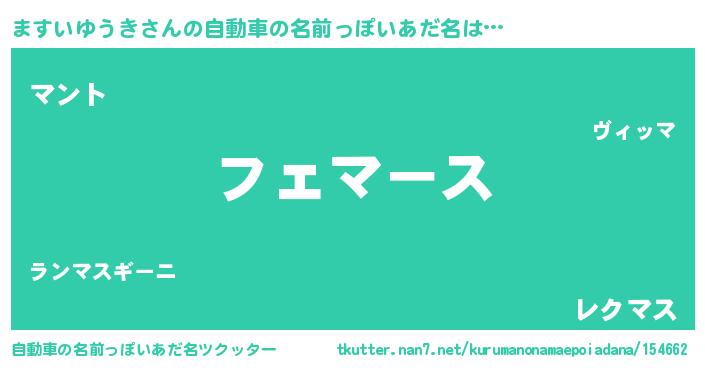 | 欧米人風あだ名 | 『ますいゆうき・ステッグマイヤー』 |