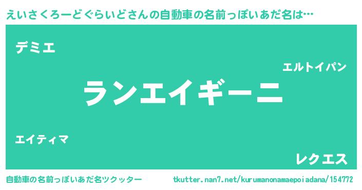 | 欧米人風あだ名 | 『アンジェラ・えいさくろーどぐらいど』 |
