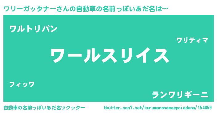 | 男性向けラノベタイトル風あだ名 | 『ワリーガッタナースレイヤー』 |