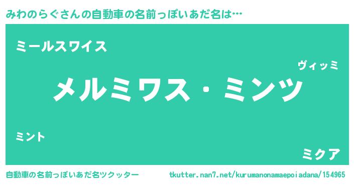 | 男性向けラノベタイトル風あだ名 | 『Re:みわのらぐから始める異世界生活』 |