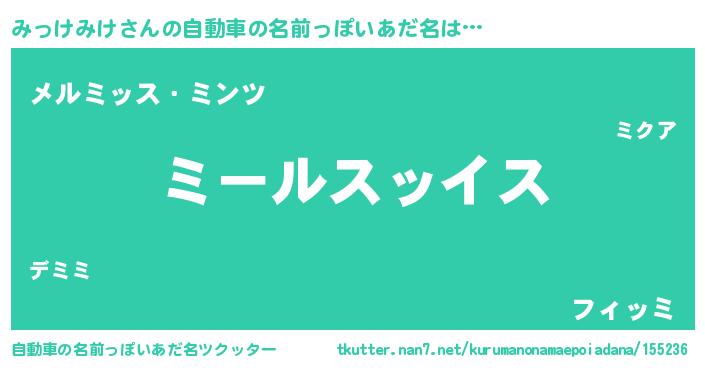 | 男性向けラノベタイトル風あだ名 | 『みっけみけ~年齢イコール彼女いない歴の魔法使い~』 |