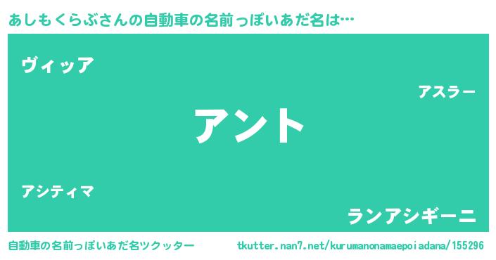 | 男性向けラノベタイトル風あだ名 | 『あしもくらぶの嫁は女の子じゃないと思った?』 |