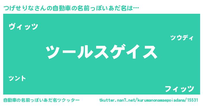 | 男性向けラノベタイトル風あだ名 | 『転生したらつげせりなだった件』 |