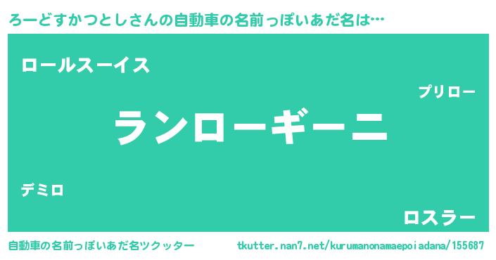 | 欧米人風あだ名 | 『アンジェラ・ろーどすかつとし』 |