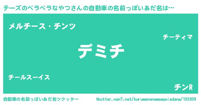 | 男性向けラノベタイトル風あだ名 | 『チーズのペラペラなやつという概念が存在しない退屈な世界 』 |