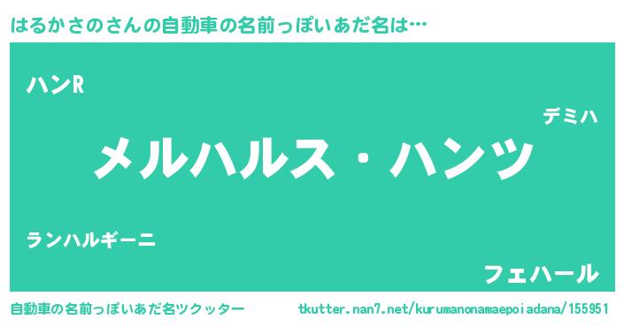 | 男性向けラノベタイトル風あだ名 | 『Re:はるかさのから始める異世界生活』 |
