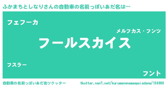 | 男性向けラノベタイトル風あだ名 | 『フカマチトシナリスレイヤー』 |