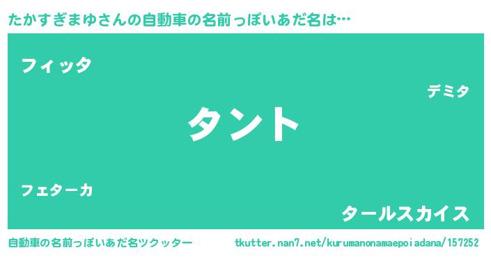 | 男性向けラノベタイトル風あだ名 | 『たかすぎまゆの嫁は女の子じゃないと思った?』 |