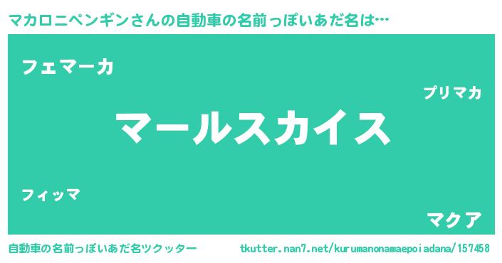 | 男性向けラノベタイトル風あだ名 | 『マカロニペンギン~年齢イコール彼女いない歴の魔法使い~』 |