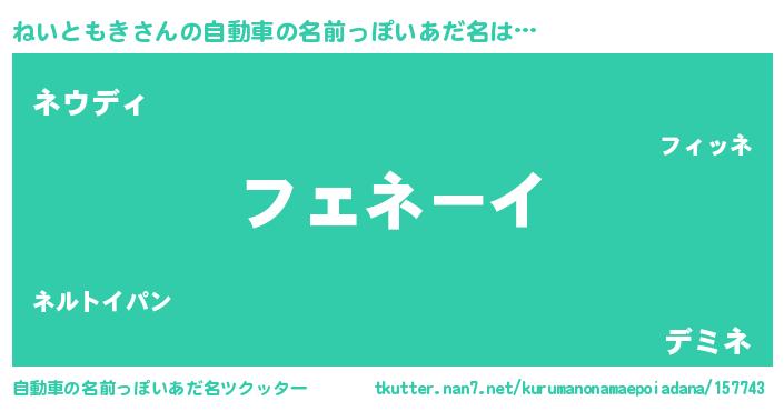 | 意味不明あだ名 | 『住所不定無職ねいともき(12歳)』 |