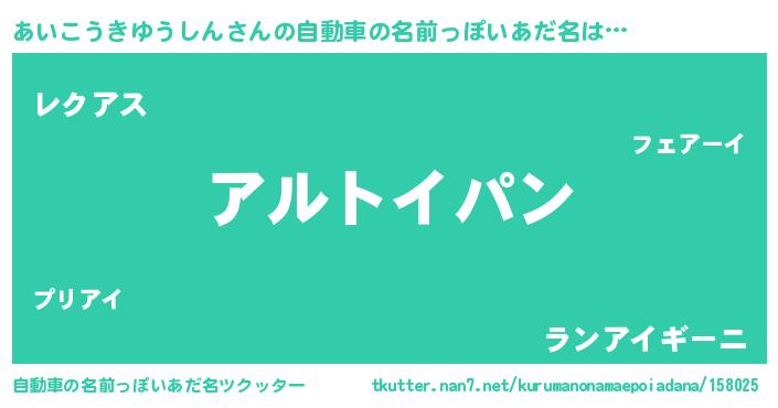 | 女子向けラノベタイトル風あだ名 | 『あいこうきゆうしんの卵を拾いまして』 |