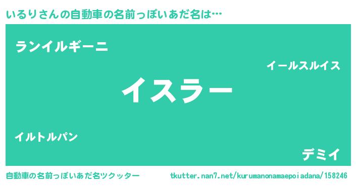 | 男性向けラノベタイトル風あだ名 | 『うちの娘の為ならば、俺はもしかしたらいるりも倒せるかもしれない。』 |