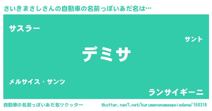 | 女子向けラノベタイトル風あだ名 | 『さいきまさしの契約王妃』 |