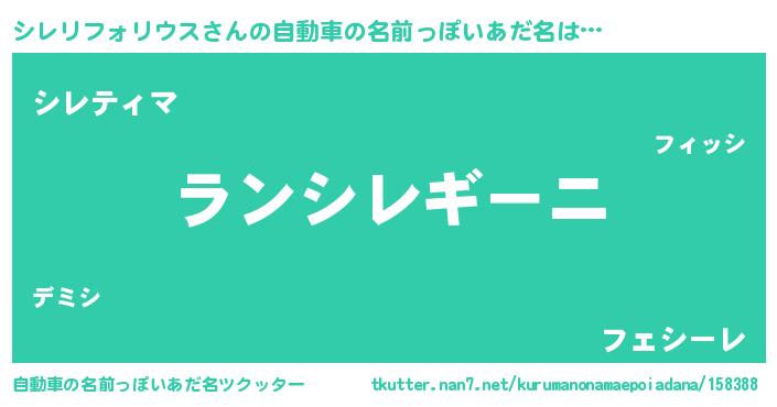 | ヘコむあだ名 | 『シレふぇ~』『シレリフォリウス(笑)』 |
