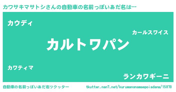 | 男性向けラノベタイトル風あだ名 | 『ダンジョンにカワサキマサトシを求めるのは間違っているだろうか』 |