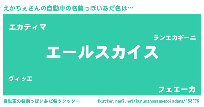 | 女子向けラノベタイトル風あだ名 | 『えかちぇの玉の輿計画!』 |