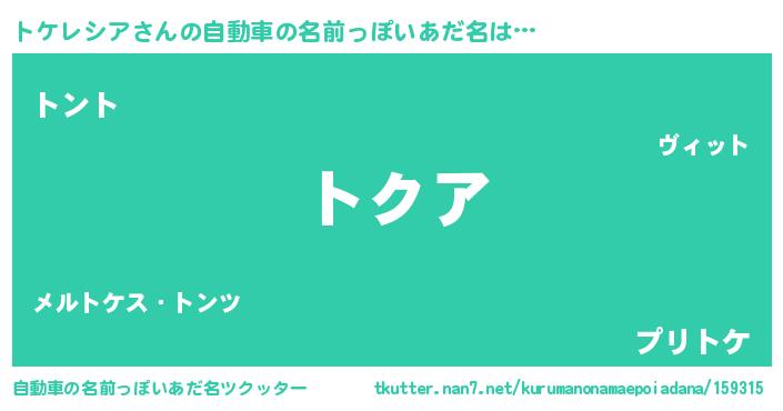 | 欧米人風あだ名 | 『トケレシアクリステル』 |