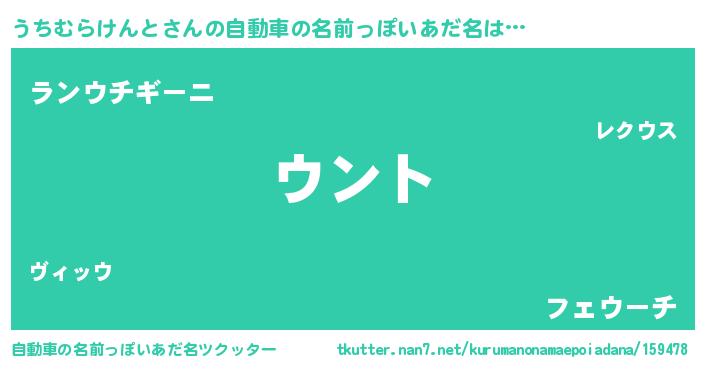 | 女子向けラノベタイトル風あだ名 | 『うちむらけんとの卵を拾いまして』 |
