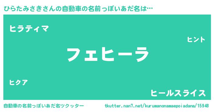 | 欧米人風あだ名 | 『ひらたみさき・ステッグマイヤー』 |