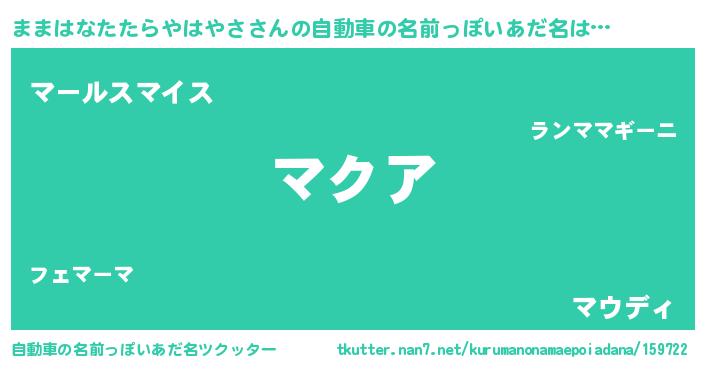 | 女子向けラノベタイトル風あだ名 | 『ままはなたたらやはやさの雑貨屋さん』 |