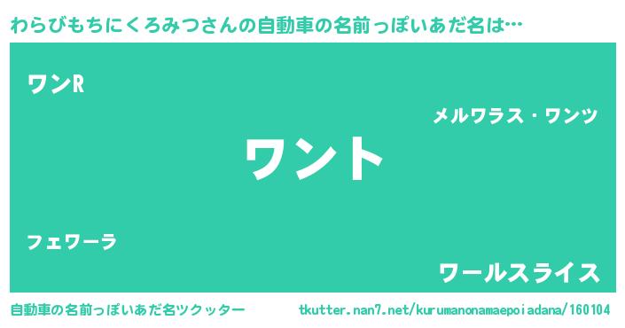 | 欧米人風あだ名 | 『ウサインわらびもちにくろみつ』 |