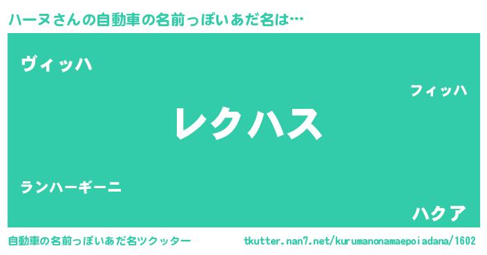 | 女子向けラノベタイトル風あだ名 | 『ハーヌなんてお断りですっ。』 |