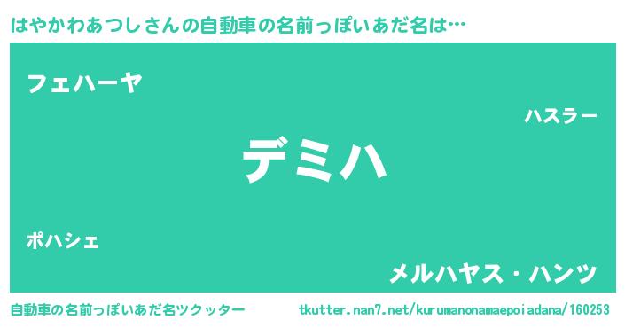 はやかわあつしさんの自動車の名前っぽいあだ名をツクッター!