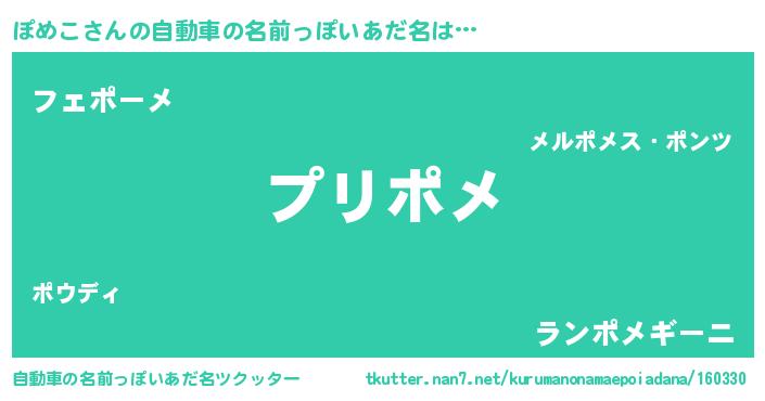 | 男性向けラノベタイトル風あだ名 | 『ぽめこの憂鬱』『魔弾の王とぽめこ』 |