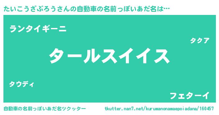 たいこうざぶろうさんの自動車の名前っぽいあだ名をツクッター!