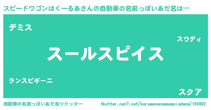 | 欧米人風あだ名 | 『トリンドルスピードワゴンはくーるあ』 |