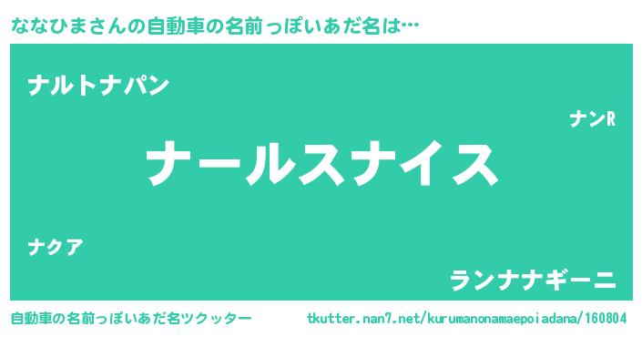 | ヘコむあだ名 | 『ななを』『つくし』『ななっふぃ~』 |