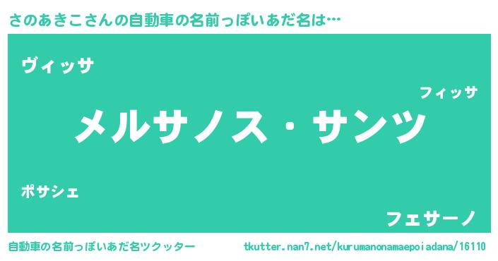 さのあきこさんの自動車の名前っぽいあだ名をツクッター!