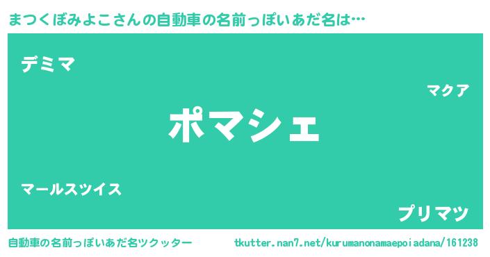 | 男性向けラノベタイトル風あだ名 | 『この素晴らしい世界にまつくぼみよこを!』 |
