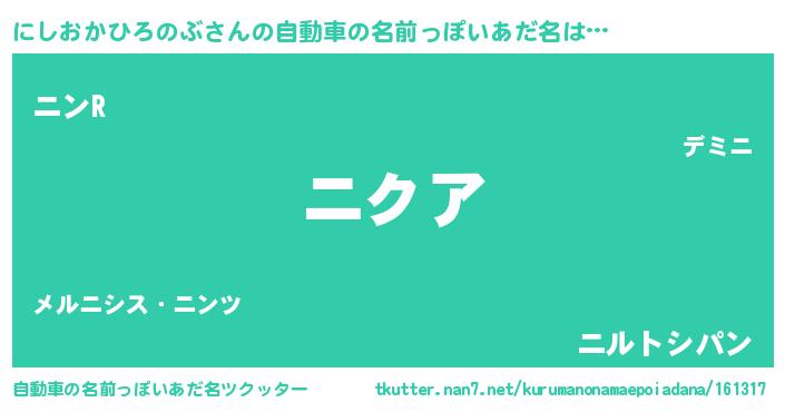 | ポケモン風あだ名 | 『ニシオダネ』『ニックウザ』 |
